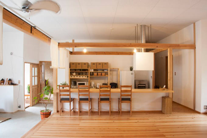 ハーブの香る家 2015.05竣工 セルフビルド / リノベーション / 地産地消 / 漆喰壁 / 薪ストーブ 元もと倉庫の建物をリノベーションした家 大きな空間の良さを生かしながら、倉庫だったとは思えないようなナチュラルな空間へと施主自らセルフリノベーション。